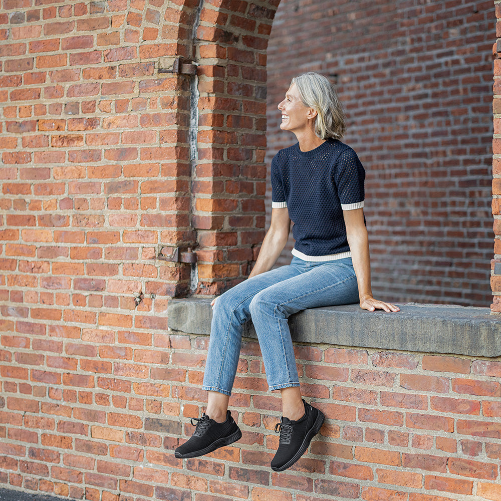Featuring Orthofeet’s hands-free slip-on technology, the Kita allows you to step straight in and out once the laces are set, without bending down — ideal if flexibility, balance, or joint stiffness is a concern.