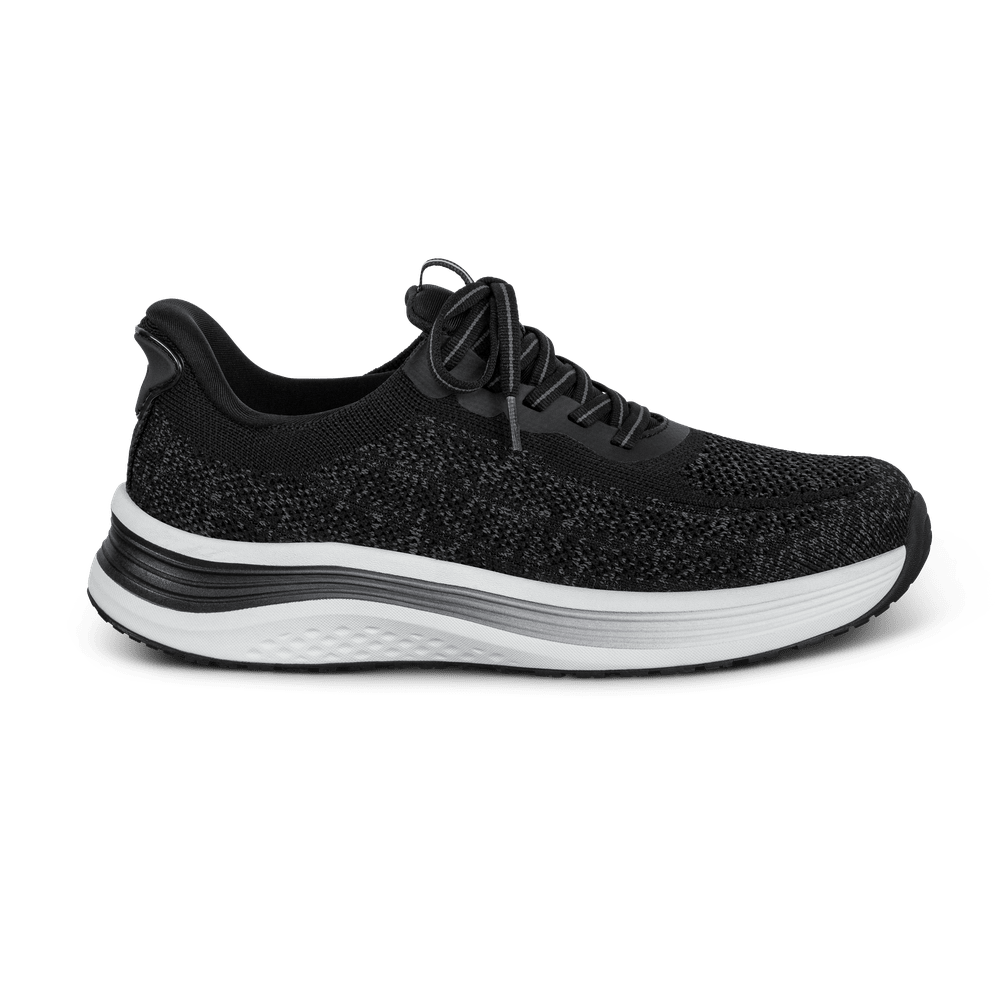 A rocker sole encourages a smooth, natural walking motion, helping to reduce pressure on the feet and joints. Finished in classic black, the Nira is practical enough for everyday wear while remaining suitable for walking and light exercise.